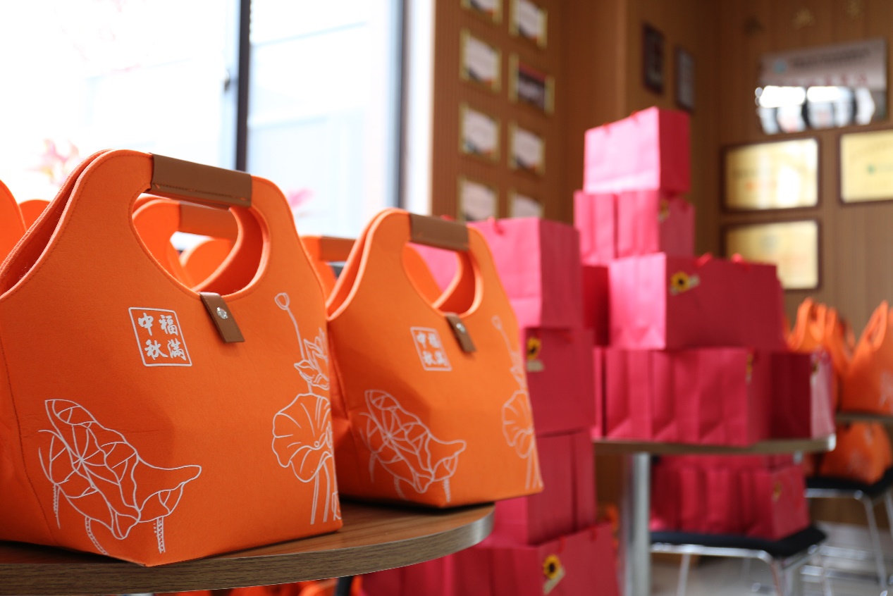 活動(dòng)現(xiàn)場(chǎng)擺滿了紅包、月餅禮包和花茶禮盒,“愛馬仕橙”和“中國紅”交相輝映,一派喜慶!