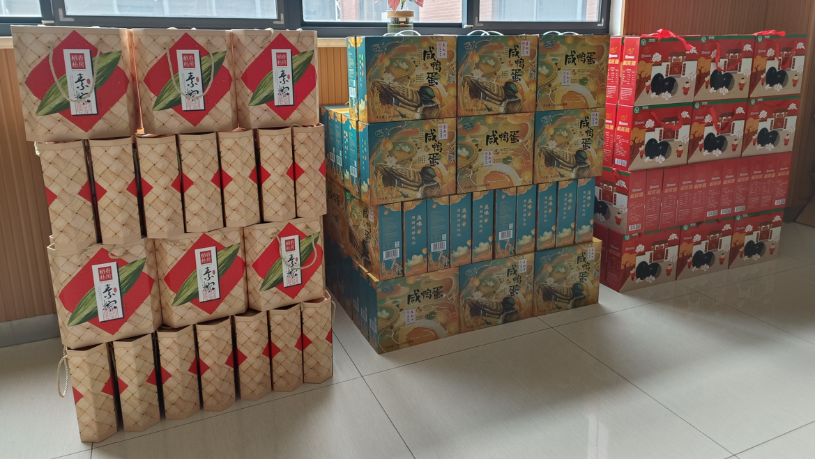 活動現(xiàn)場擺滿了粽子、咸鴨蛋、松花蛋等傳統(tǒng)節(jié)日食品禮盒,節(jié)日氛圍感拉得滿滿!